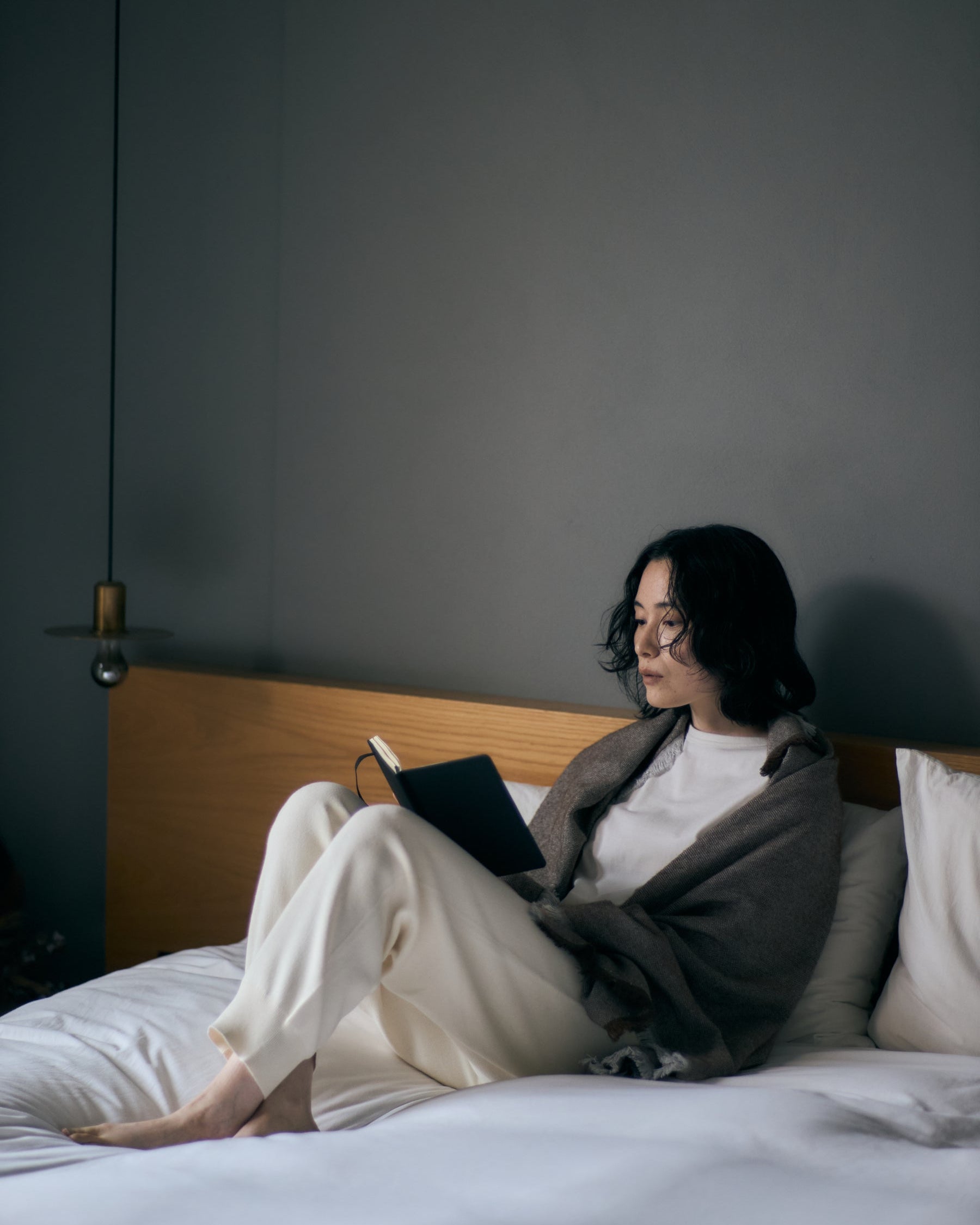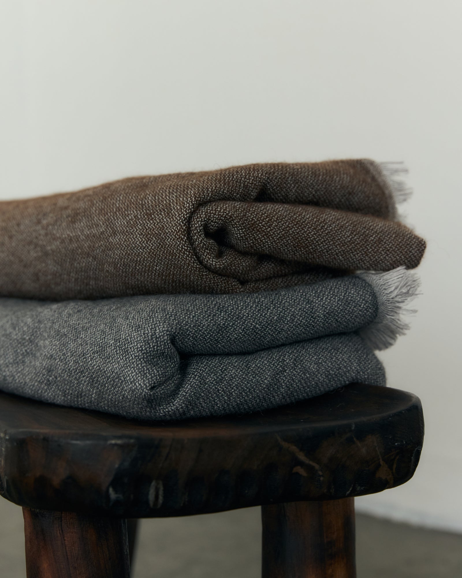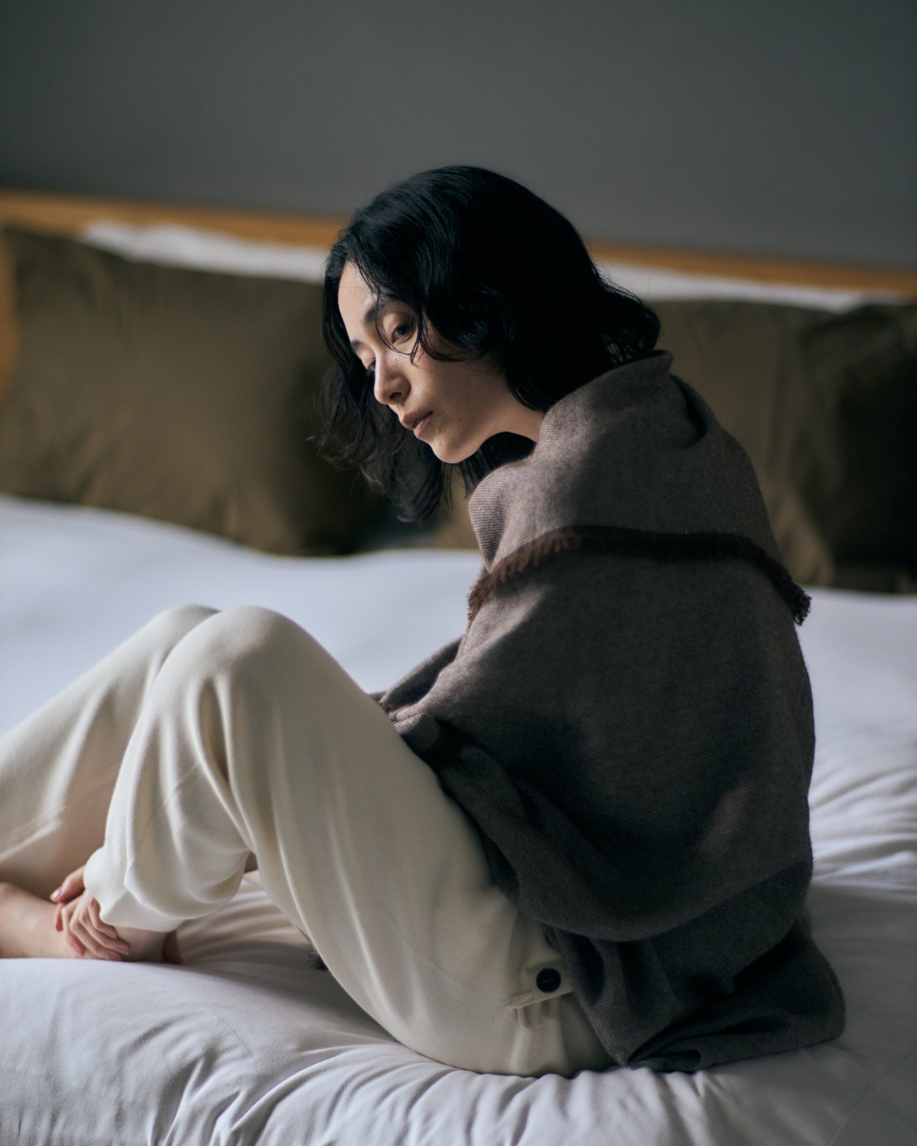 The blanket is crafted from a single-layer gauze fabric made with premium baby alpaca. Baby alpaca fibers are exceptionally fine and supple, offering a melt-in softness the moment they touch the skin. They are gentle and non-itchy, making the blanket comfortable for prolonged use, even directly against bare skin. Thanks to alpaca’s characteristic hollow fibers that trap air, the material remains lightweight and thin while providing excellent warmth. It also offers high moisture-absorbing and moisture-releasing properties, keeping you comfortable without stuffiness—even in dry, heated winter environments. Highly durable and resistant to pilling, it maintains its beautiful texture even with everyday use. A winter essential that balances lightness, warmth, and exquisite softness.