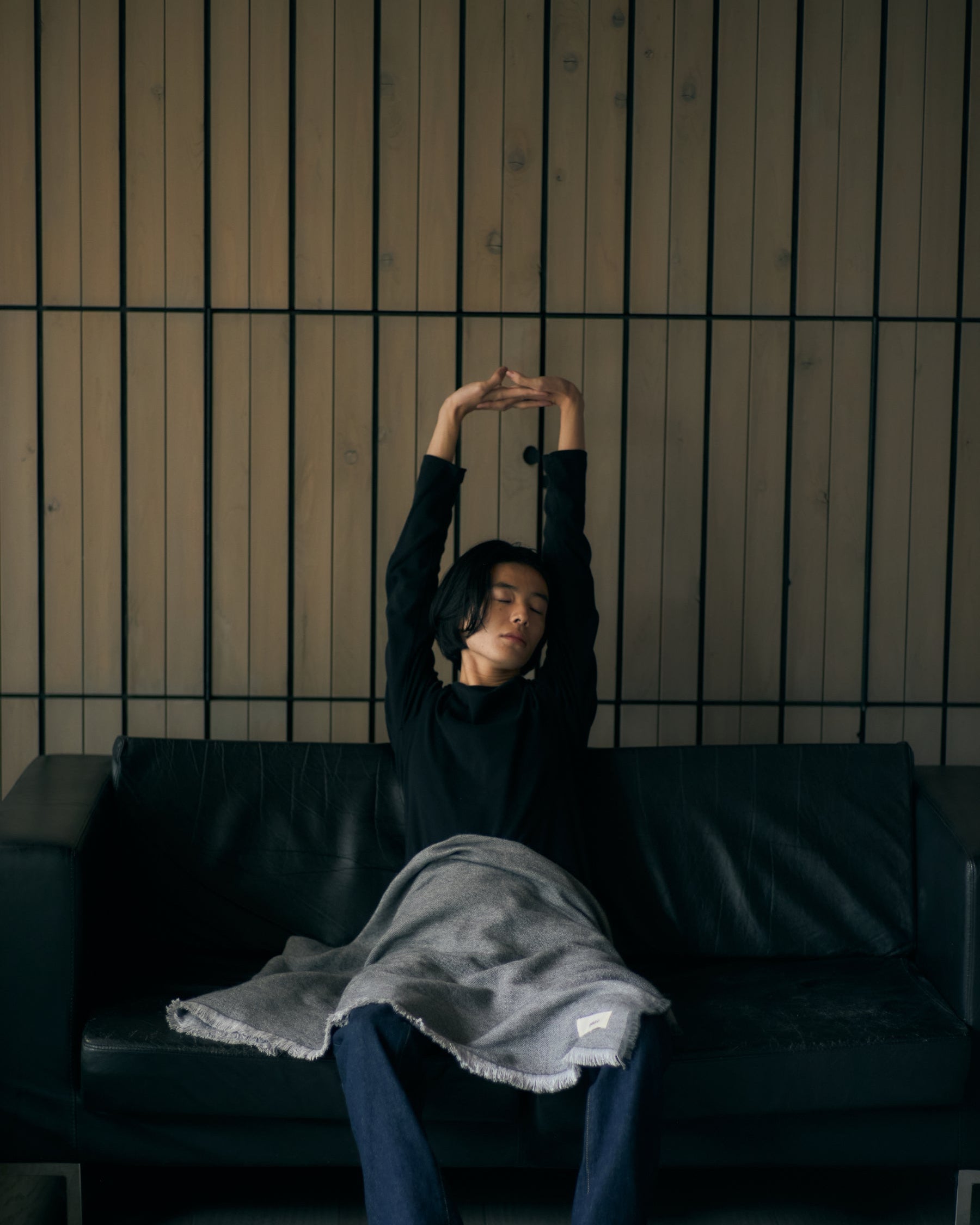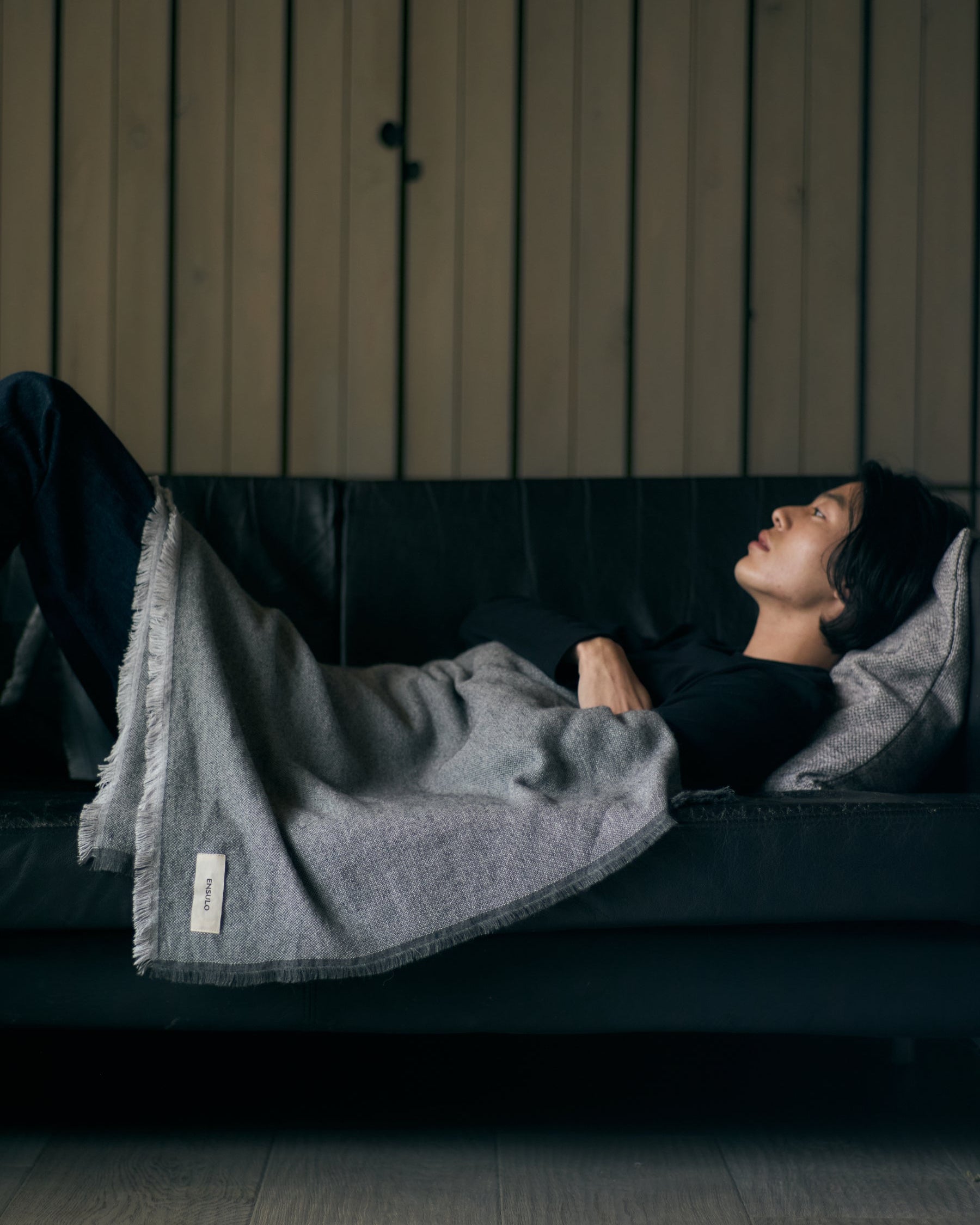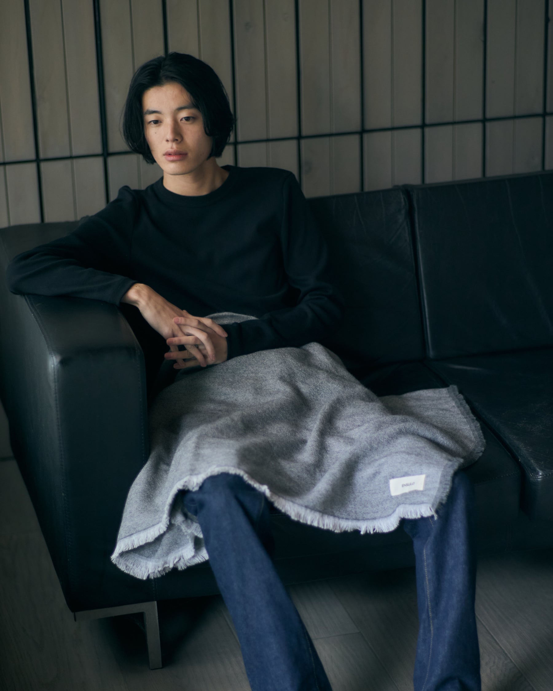 Despite its large dimensions, it is remarkably lightweight and folds down compactly, making it easy to carry at home, in your workspace, or while traveling.A minimal, understated appearance is accented with an embroidered ENSULO name tag, giving the piece a quiet yet refined presence.Highly versatile, it can be used not only as a lap blanket but also draped over the shoulders like a stole.Whether relaxing on the sofa or adjusting your temperature on the move, it brings comfort to a wide range of winter moments.Designed to offer a sense of“wearing tranquility”this blanket adds small pockets of calm to your everyday life—an essential piece for the colder season.