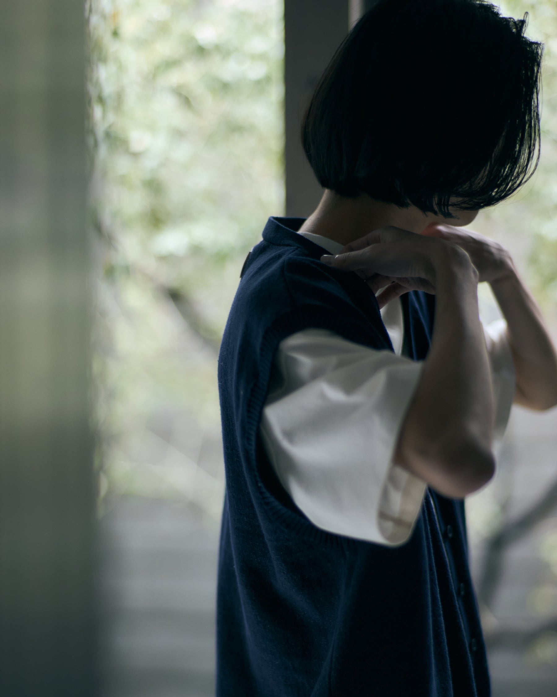 This knit vest is designed with classic, understated detailing, offering a simple yet versatile addition to your wardrobe. The slightly dropped shoulder width softens the silhouette, preventing it from appearing too sharp when worn on its own. As a sleeveless top, it maintains a refined, grown-up feel with an effortless sense of ease. Ideal for layering, it can also be worn solo depending on the season or styling, making it a highly adaptable piece suited to a variety of looks.