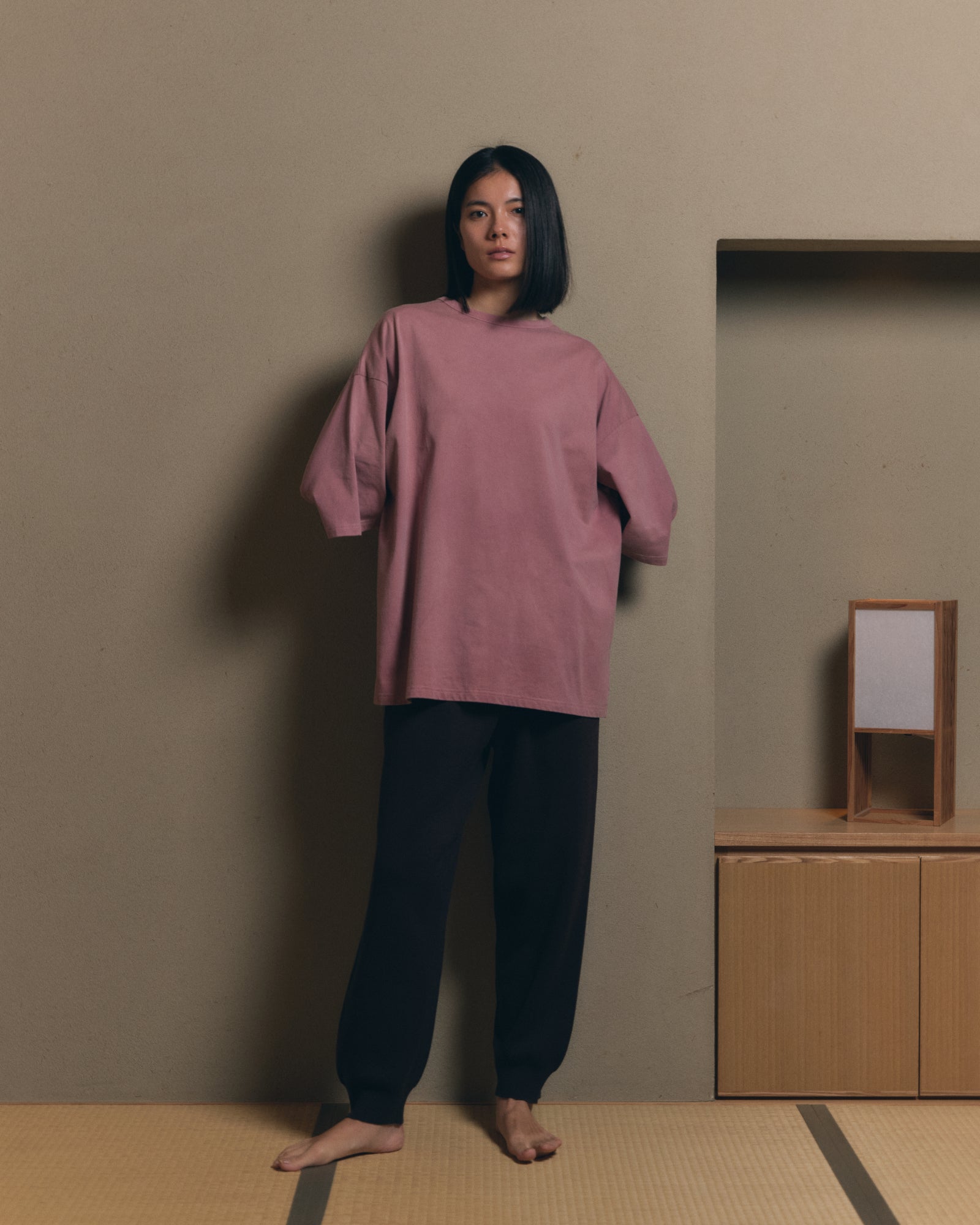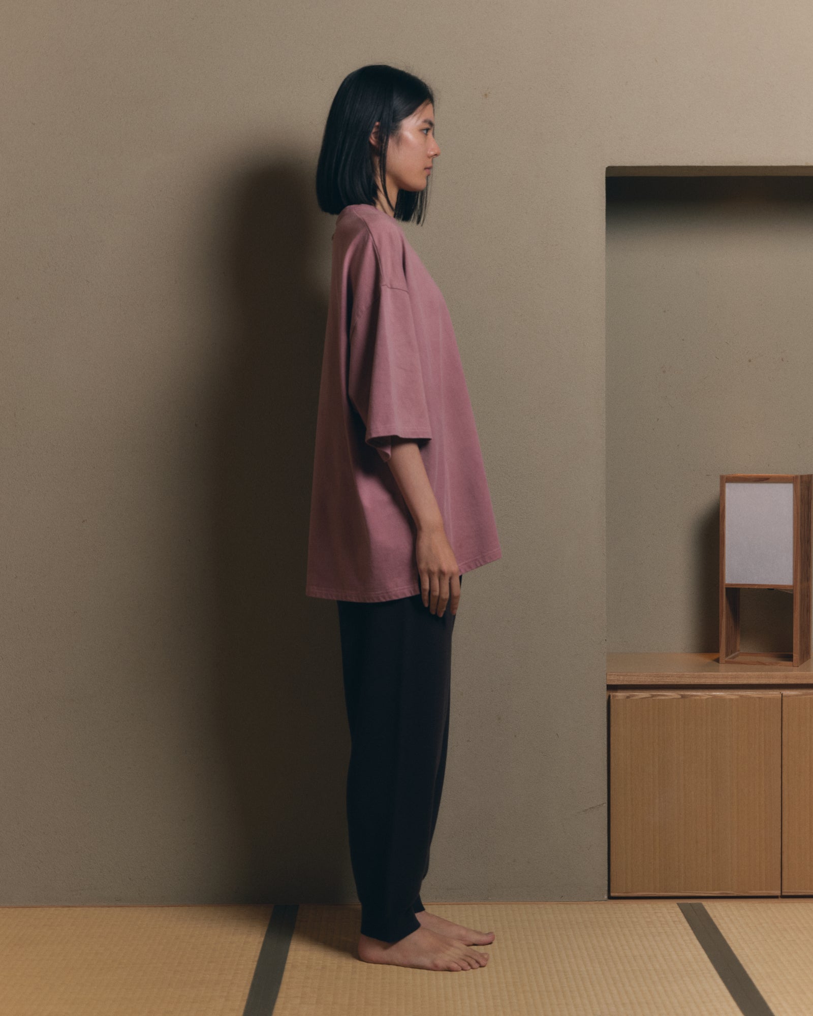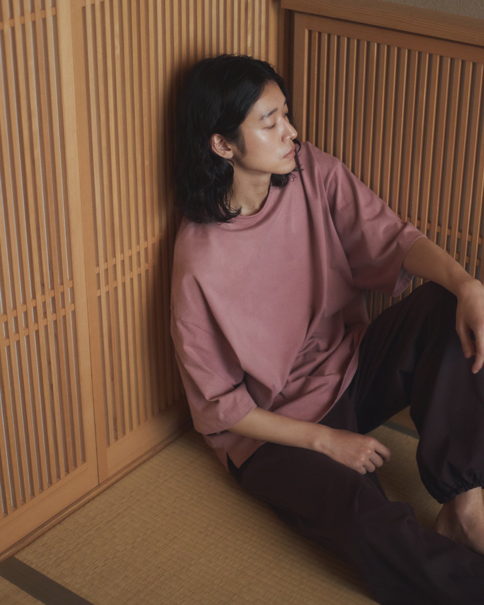 This relaxed-fit T-shirt is garment-dyed by textile artist Namiko Ishibashi (amorit.), using the residues from wine produced at Ohasama Sato Vineyard in Iwate.