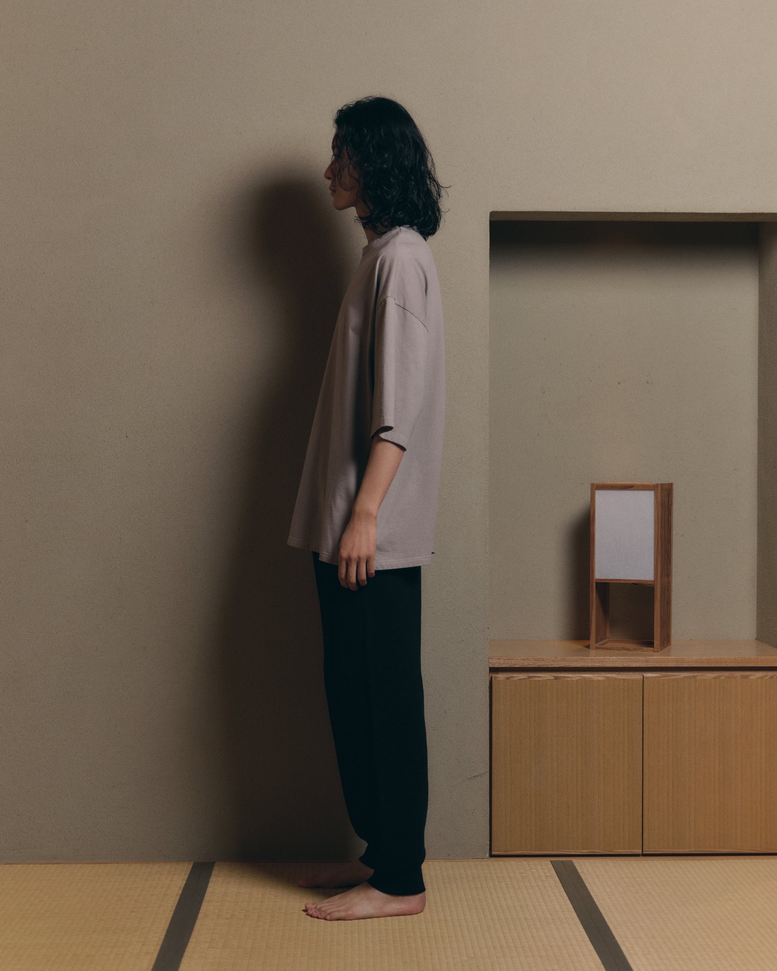 Made with PIECLEX, a jersey fabric produced at a knitting mill in Wakayama using a specialized knitting machine. This soft, absorbent, and quick-drying material features polylactic acid on the skin-contact surface, delivering both comfort and functionality. It offers a distinctive crispness and structure while maintaining a natural fit, ensuring the silhouette stays sharp and refined.